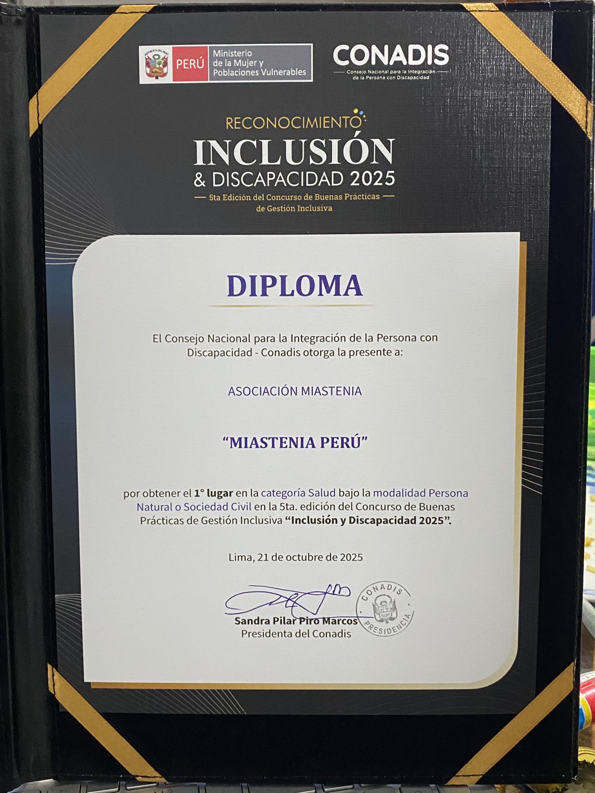 Miastenia Perú, recibe un reconocimiento en la 5ta edición del Concurso de Buenas Prácticas de Gestión Inclusiva 2025